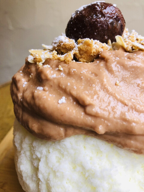 中にはアーモンド 粒あん 玄米抹茶ムース