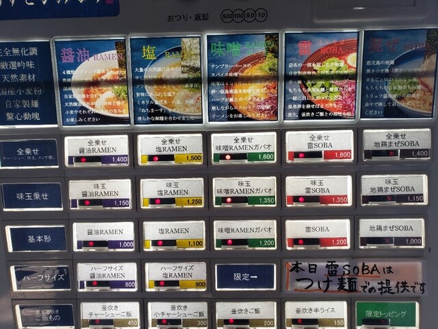 券売機のメニュー