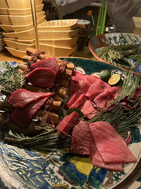 センマイやハツなどが時期的に安定しないのでと、記載のコース内容と少し変更がありましたが、甘口のタレの赤身の刺しにタン刺しとどちらもとても美味しかったです。