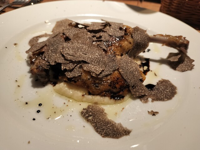 ただ、トリュフの香りと鴨があっているかというと正直クエスチョン。これだったら、違う料理にかけたいな、と思いました。