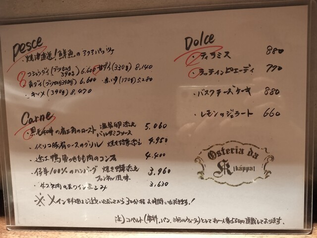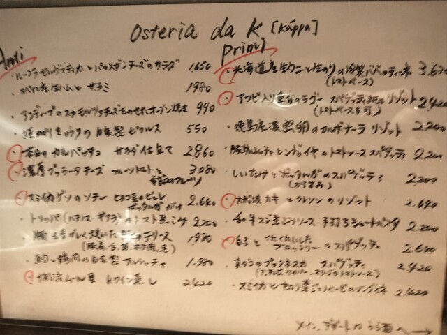 銀座にあるイタリアン。当日予約で入れました。開店から1時間でほぼ満員でした。一つ一つのポーションが小ぶり。このため、品数多く頼めます。料理はたった一人ですべて担当され、注文は一度にしてほしいと要望されました。2人で前菜2品、パスタやリゾットで2品、メイン1品です。注文は紙に書かれていますが、その記憶力はさすが。
