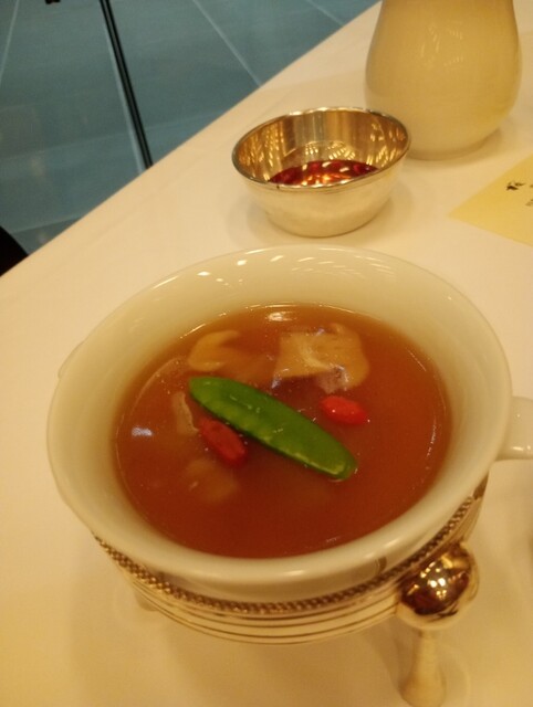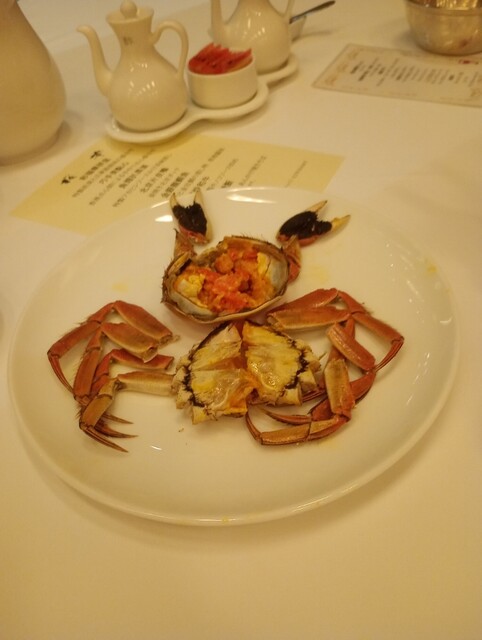 息子のお嫁さんのご両親とお邪魔しました。カバーになっている紹興酒は10年超。5年ものと比べるとはるかにおいしかったです。今日の一番はトビコ入りのシュウマイ。程よい塩加減で本当においしかったです。何を食べても外れないです