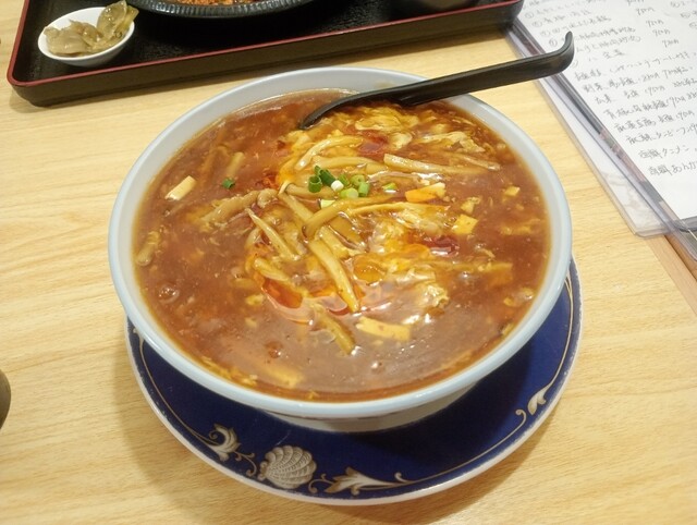担々麺は結構どこのお店にもあるけど、スーラータンはなかなかない。食べたいなーって思っていたら近所にありました。お酢がきいていて、具もゴロゴロと入っていました。とろみがあるのでいつまでも熱い。おいしく頂きました。麺が太目でした。細ければもっと良いと思います