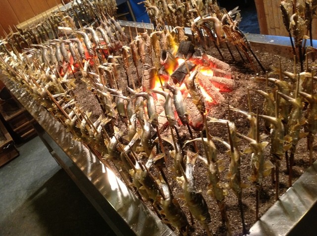 若鮎の塩焼きは、丸かじりでいただきます。鮎の香りがこんなに強く、若鮎だけあって頭からかぶりつき骨も柔らかい。
