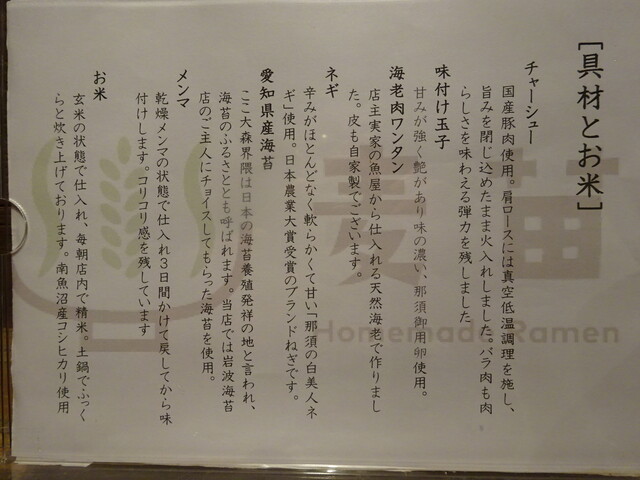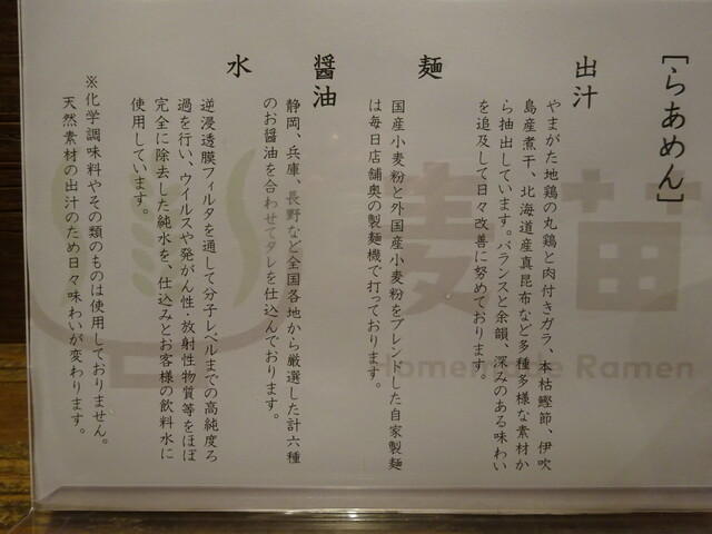 ・スープは、やまがた地鶏の丸鶏と肉月ガラに煮干し、本鰹節、昆布など色々な素材で作っている。