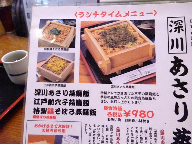 ランチ候補のお店は、何店かあったのですが、深川めしの蒸籠バージョンを食べたかったので。