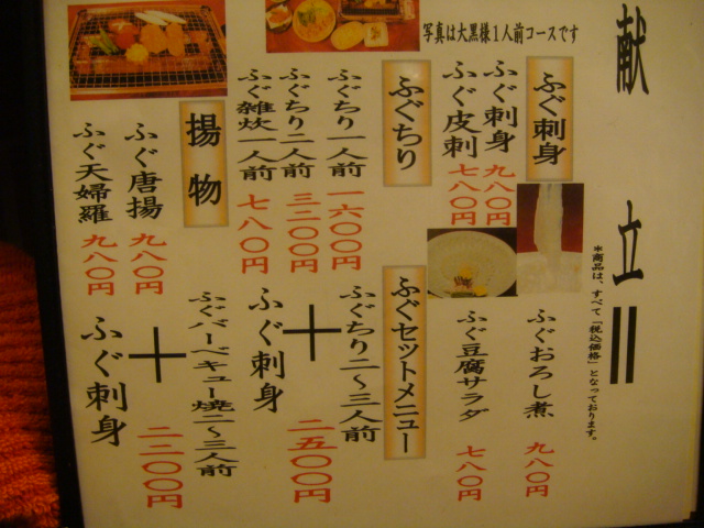 武蔵中原徒歩七分、安くておいしいフグ屋さん。