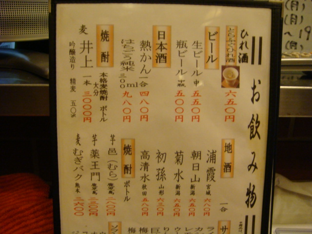 また、お酒のメニューも豊富です。しかしこの日は、当然ヒレ酒です!!