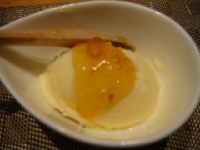 デザートのアイスに自家製の梅ジャムかさわやかで口直しにもってこい。