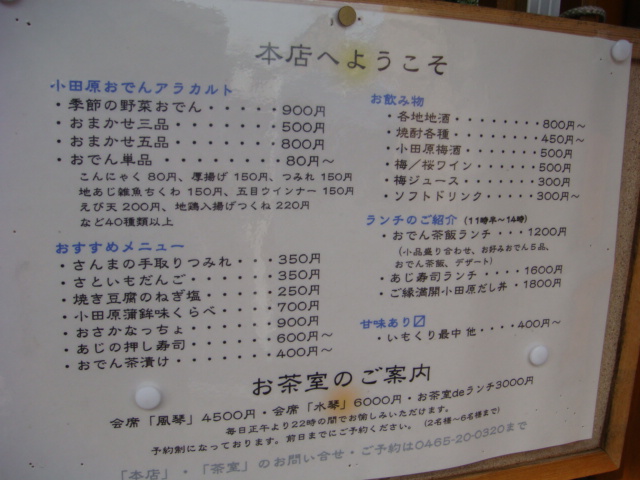 小田原駅から車で5分ぐらい、素敵なおでん屋さん発見。