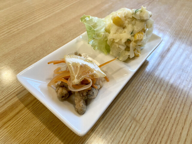 地物の稚鮎の南蛮漬け、ポテトサラダです。