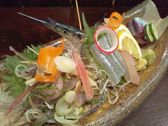 サヨリ、マアジ、マイワシ、数種の白身、春を感じられる盛付けです。