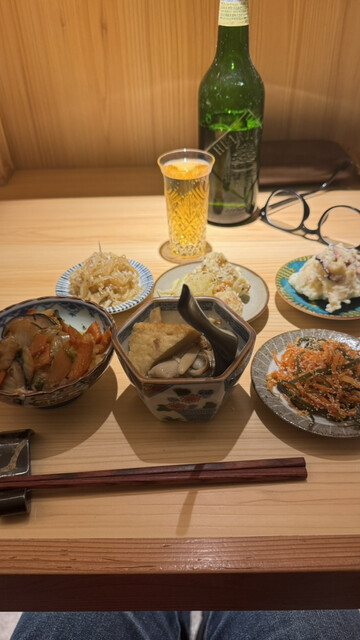 おばんざいは食べ放題のため、いくつかはお替わりを。先週には無かった「烏賊と菜の花の味噌炒め」のほろ苦さに、季節を感じる。