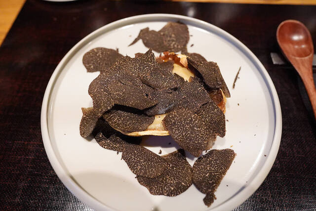 仕上げにグラタンが見えないほどたっぷりの黒トリュフを削って!