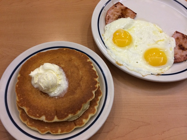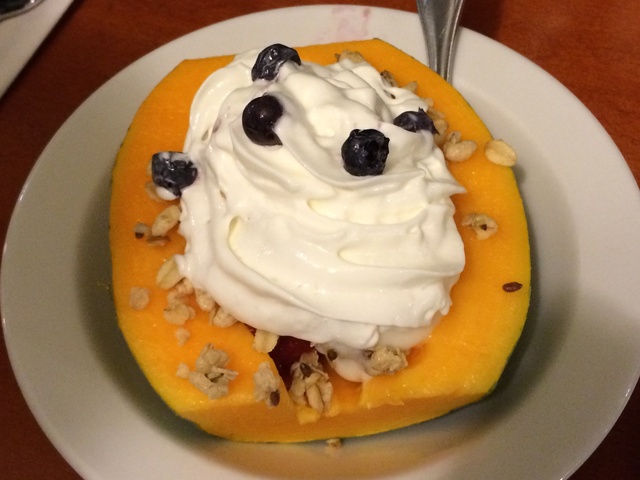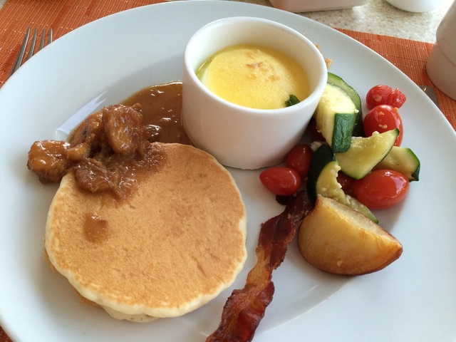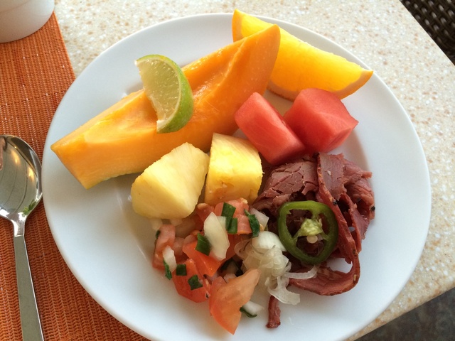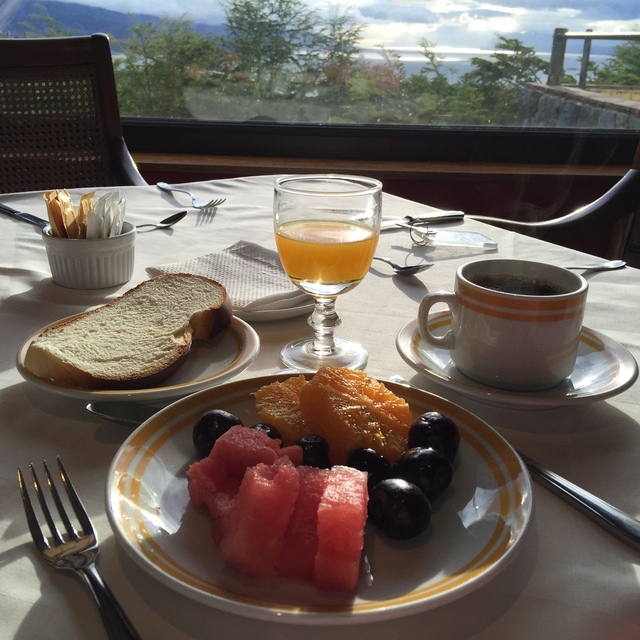 海が見えるホテルのレストランでフルーツたっぷり朝食