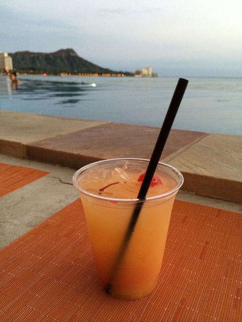 a 夕暮れのダイヤモンドヘッドとウェルカムカクテル