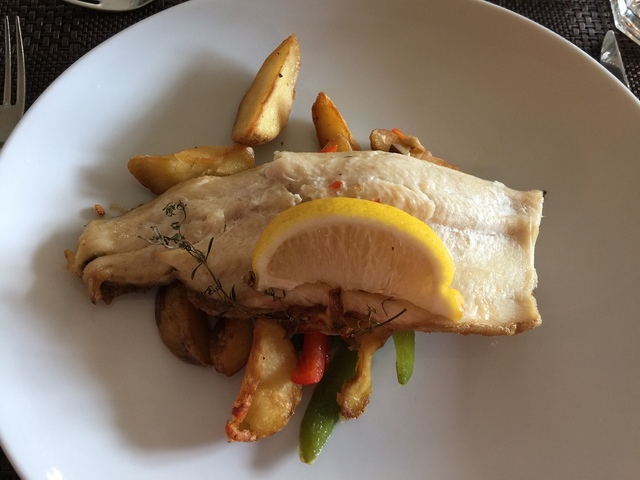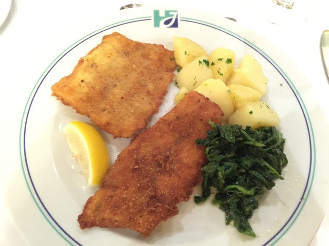 夕食に出てきた魚のフライ、フダン草&ポテト