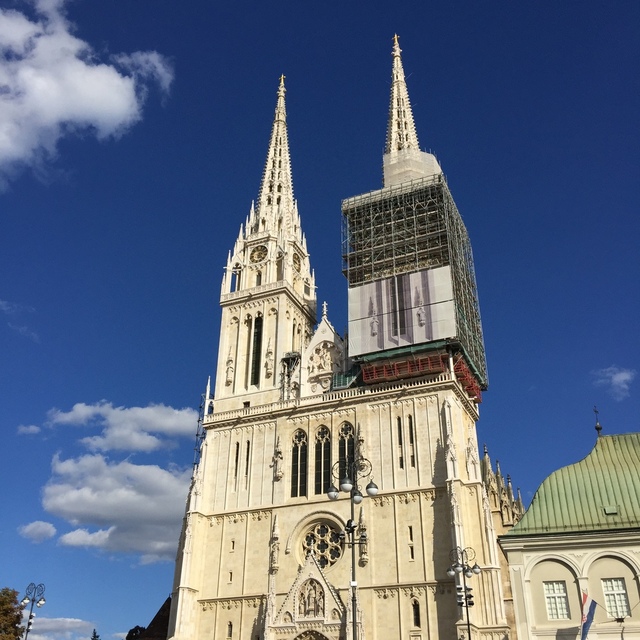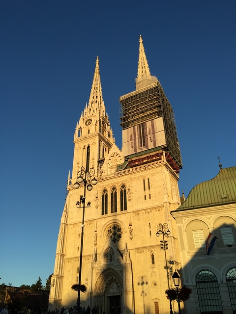 ザグレブ(夕方の大聖堂、夕日を受けて黄金色)