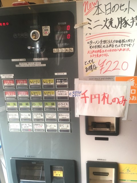 私は「こってり塩ら〜めん(780円)」「豚角煮丼(220円)」をチョイス。ジャスト1000円。