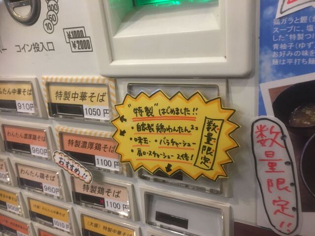 前回は「特製濃厚鶏そば(1100円)」を食らいましたので今回は「特製中華そば(1050円)」にしました。