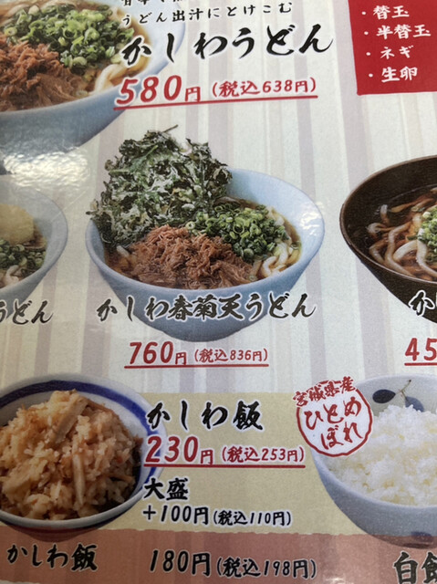 「かしわうどん」は甘辛く煮た鶏肉の旨みがうどん出汁にとけこむらしいです。初めてなのでドキドキです。