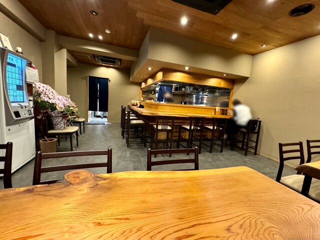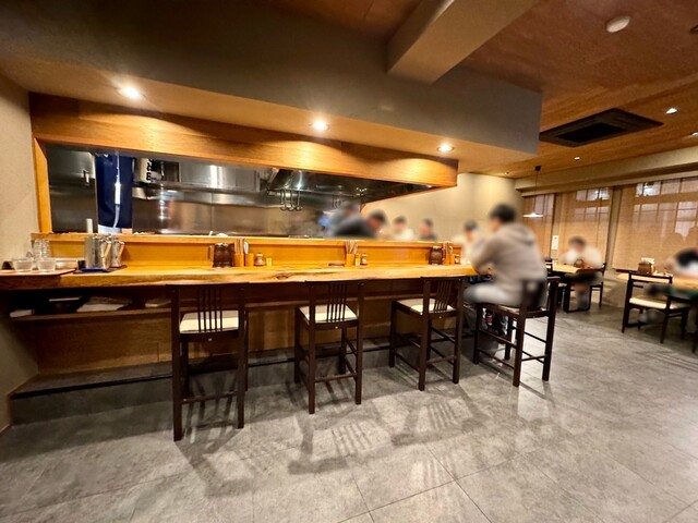 店舗のレイアウトは天ぷら屋の時代と変わらず、カウンター8席、6人掛けテーブル2卓の合計20席。仙川時代の店舗を比べると倍以上の席数があり、広々とした空間。