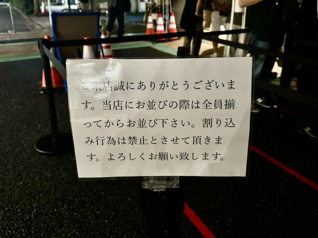 狛江移転後5回目の訪問。平日の閉店間際の19時55分に到着して5人待ち。人気行列店ながら基本的に早仕舞いはなく20時までに並べば食べられる安心感も重要なポイント。