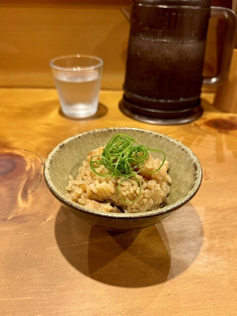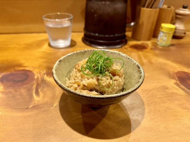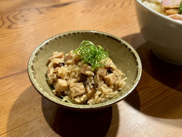 炊き込みご飯はいつもは昼で売り切れてしまうことが多いが、この日はたまたま夜まで残っていた。醤油ダレで炊いた炊き込みご飯は醤油の旨味や深みのあるコクをダイレクトに味わえる。たっぷりの切り落としチャーシューに加えて、刻んだ椎茸も入っていて、醤油(グルタミン酸)と椎茸(グアニル酸)の旨味成分の相乗効果が楽しめる。
