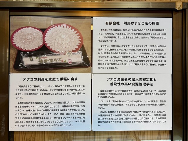 活穴子や穴子加工品の出荷販売を行う水産加工会社「株式会社フレッシュ対馬」の直営店として2014年9月にオープン。