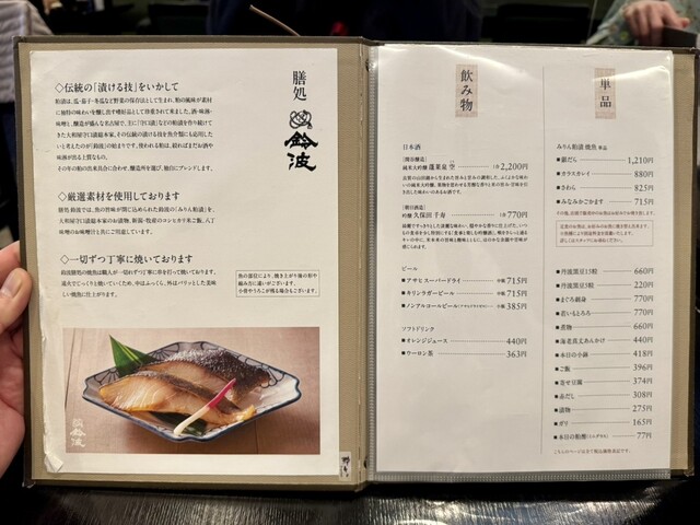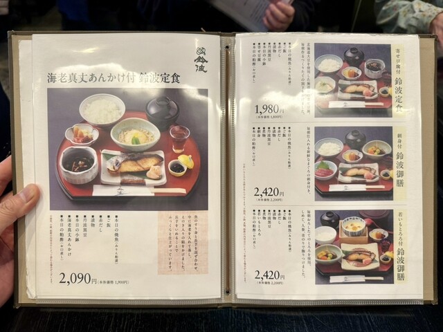 メニューは焼魚(みりん粕漬)がメインの和定食ラインナップで1700円~2400円前後。焼魚定食としてはかなりセレブな価格に思えるが、鈴波の魚介みりん粕漬は1切れ1000円前後の高級品なので、むしろ直営店ならではの原価販売といえるぐらいお得。