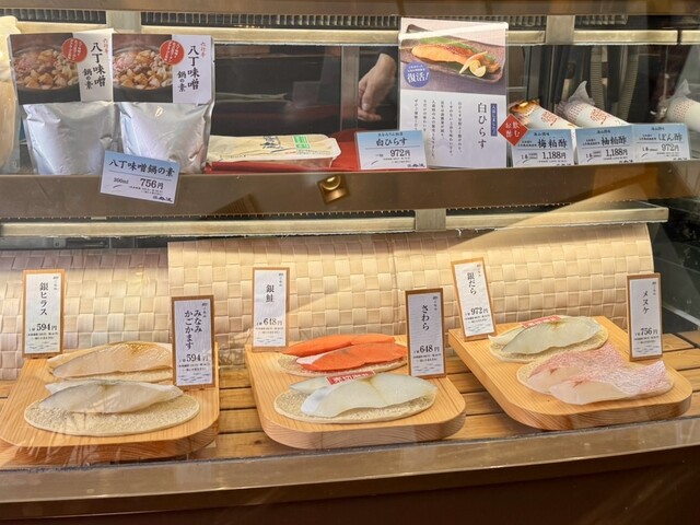 現在は鈴波のブランドで、こちら栄本店の他、名古屋や東京のデパートや地下街に店舗を展開。いくつかの店舗には売店併設のお食事処(膳処)もあり、こだわりの魚介みりん粕漬を中心とした和定食を楽しむことができる。