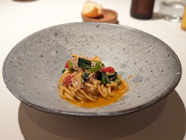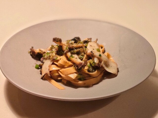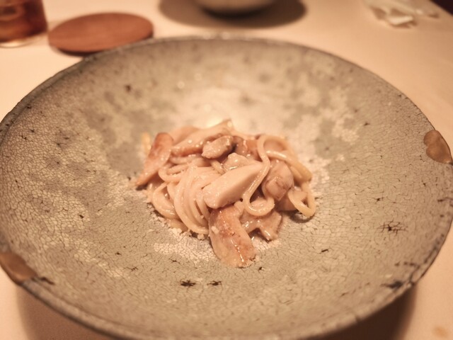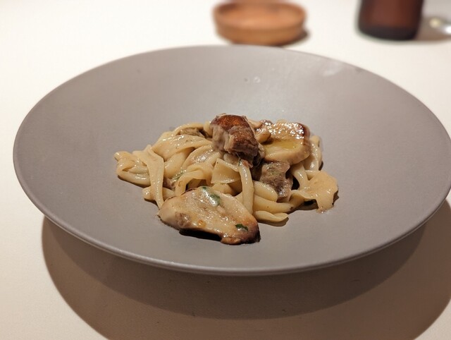 焼いては軸の部分と、傘のとろっとした食感を楽しみながら、パスタにしては香りを存分に楽しめる。洋風きのこはやはり油脂との相性が抜群ですね。