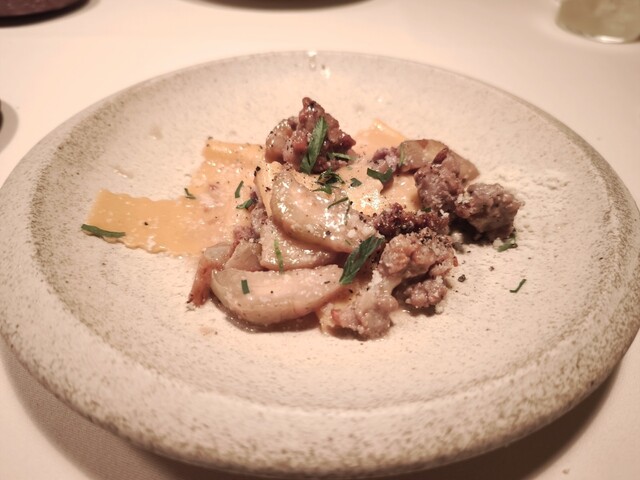 メインは事前オーダーをしておいた七面鳥のロースト。チルドの七面鳥は、ホロホロ鳥にも負けない繊細な旨味。胸肉と腿肉の風味の違いや、骨の付近の野趣を感じる香りなど、普段は食べられない七面鳥の魅力を堪能できました。