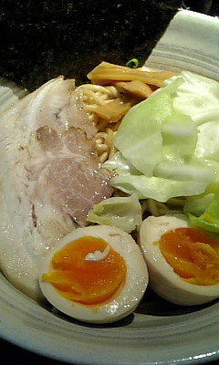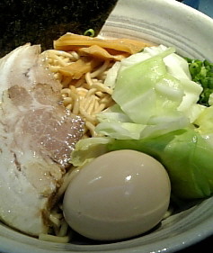 味付け玉子は黄身がちょっと固め。焼豚くんは薄くて大判。脂身が多くて味は薄いからこれもタレ油に漬けて麺と食べるのがGOOD!!