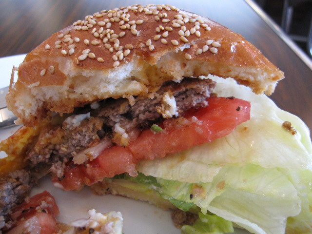 口に入れ噛んでいくとまず、バンズが美味しい、つづいて肉が美味しい、さらにソースが美味しい、と徐々にパーツの旨味が感じられ、食いちぎった後は あ~しあわせ~ と思えるハンバーガーでした。