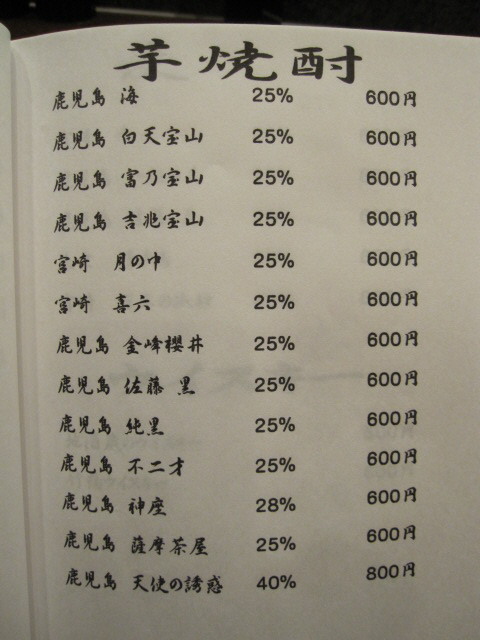 焼酎メニュー