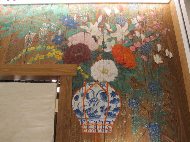 店内には森村宜高(よしたか)氏 の日本の情緒のある日本画が描かれ食事の出来上がりを待つ間も絵画を楽しめる。カウンター上部には梅、桜、あさがお、もみじなど季節の植物が描かれてあった。
