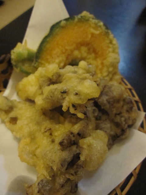 舞茸の天婦羅付きのせいろ蕎麦・・・と思いきや、かぼちゃとピーマンの天婦羅までついていて得した気分 ^^)。