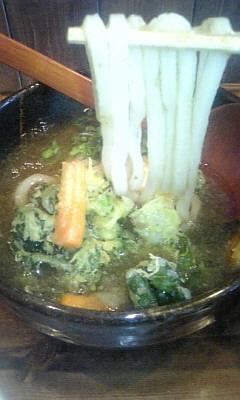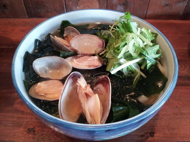 大きめのアサリ、アオサ海苔、ワカメなど海の旨みたっぷりのうどん。 特にアサリの旨みが濃い!2013、5/1~5/15