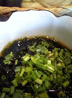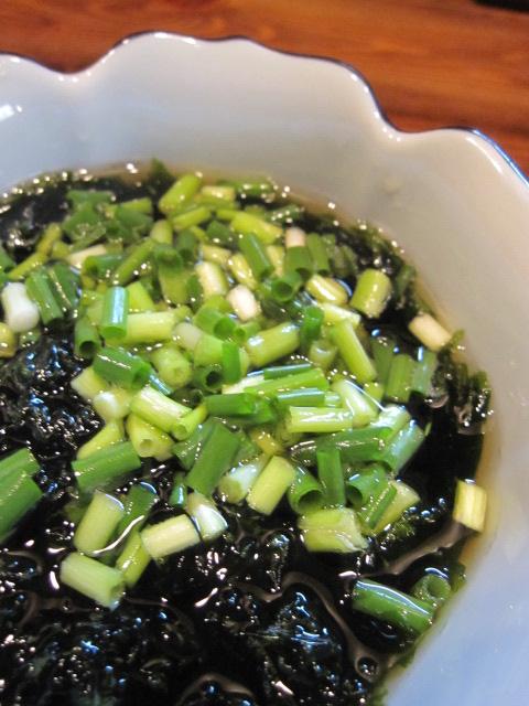 つゆの中に小ネギと四万十川産の”あおさのり”がたっぷり入っています。暑い時期にさっぱりサラサラ頂けます。