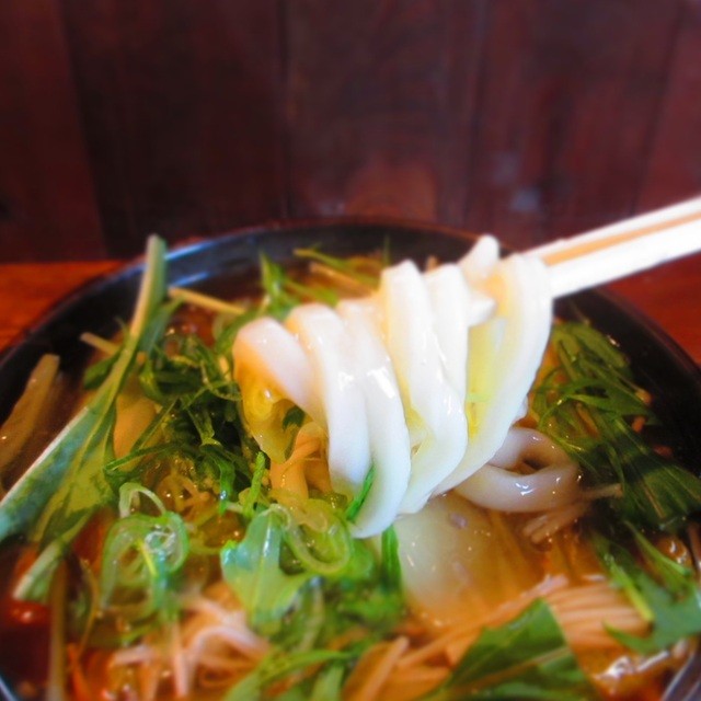 春~初夏のうどん。辛い物好きにはお勧めだがせっかくの美味しいうどんの味が解らなくなってしまう。