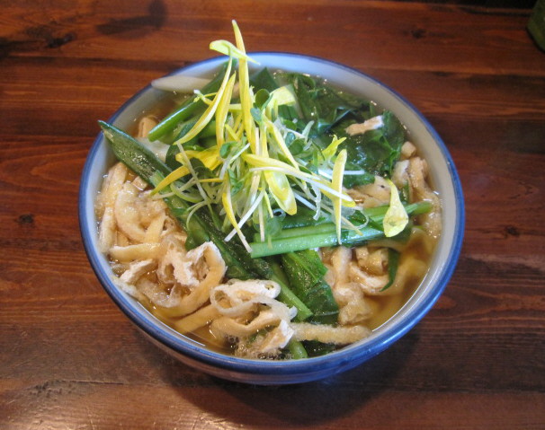 細長く切った油揚げがたっぷり&カルシウム豊富な旬の小松菜、九条葱が入ったこの時期ヘルシーなうどん。 名古屋では しのだうどん、って呼ばれてますよね。
