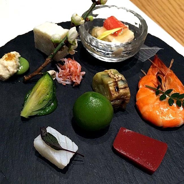 Kingofkimchi、肉ウニ、○○トマト、季節の一品は秋茄子とニンニクのピューレが乗った秋茄子のグリルでした。