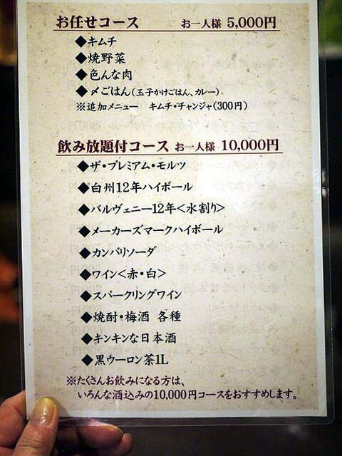 コースは5,000円。ビール600円、黒ウーロン茶600円。