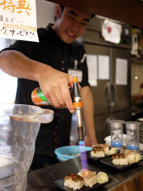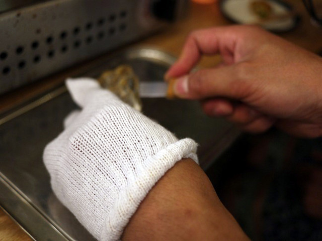 1日昆布で〆た牡蠣を目の前で炙っていただきます。
