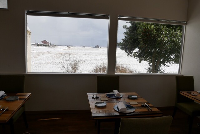 店内の窓からは絵画のような四季の田園風景が楽しめます。