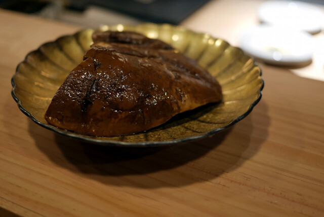 あん肝といえば蒸してポン酢で食べるくらいしか知りませんでしたが、こちらはケーキのように分厚く切って、そのままいただきます。