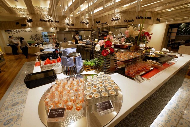 ライブキッチンでは焼き立てのステーキや、揚げたての天ぷらなどもあるのよ。