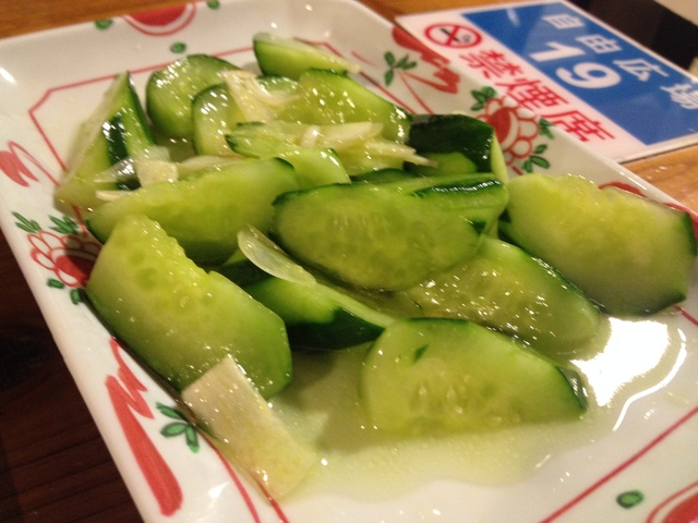 キュウリのたたきなんかも頂きました。カツオには、にんにくと、柚子の漬け汁がつきますが、