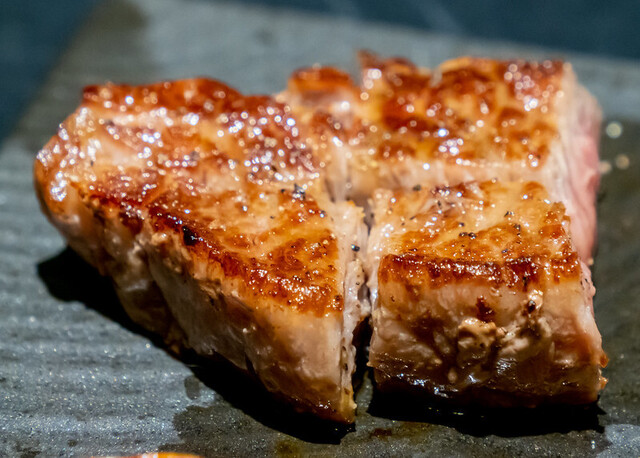焼き野菜をゆっくり楽しんでいたら、サーロイン、シャトーブリアンが出来上がりました。ちょうどよい温度・焼き加減で提供されるのが鉄板焼の醍醐味。
